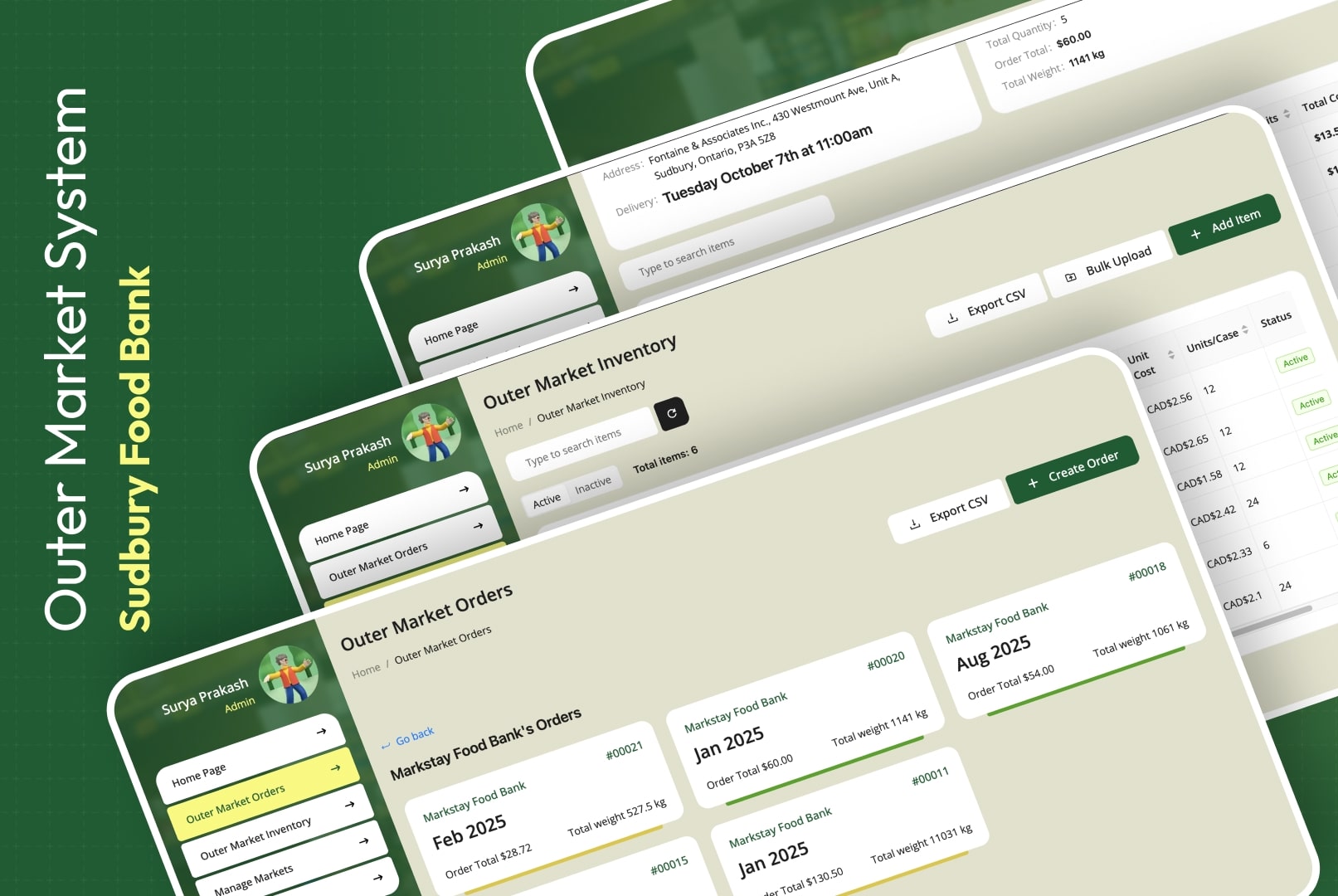 Progressive web app developed with Next.js and SQLite for a nonprofit. Enables local food banks to manage inventory and community market orders efficiently, hosted on Azure.